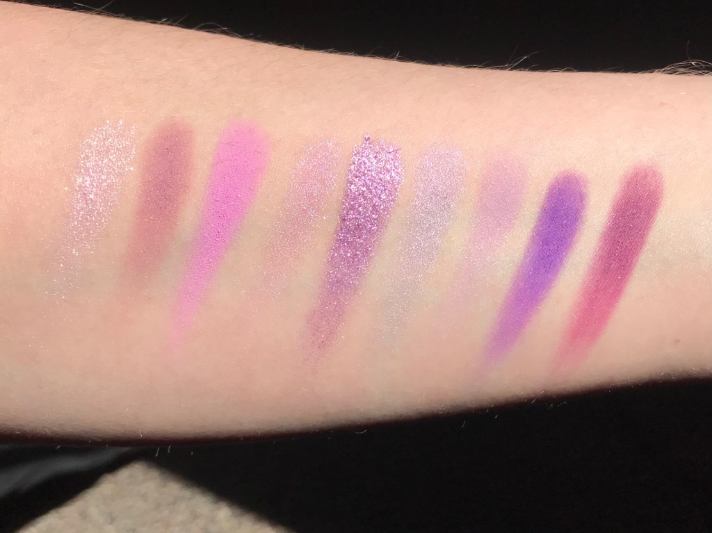 As in That’s Taupe, the mattes in Lilac You a Lot are of excellent quality, while the shimmer and metallic shades are on the dry side. Most of my ColourPop shimmer and metallic singles have a soft, smooth formula, so I’m curious why similar shades in the palettes are inevitably dustier and chunkier. The good news is that there are no dud shades in this palette as there were in That’s Taupe (Constrictor) and in Uh-Huh Honey (Palooza, the glitter, by default). Overall, Lilac You a Lot is the highest in quality of the three palettes and the one I’d recommend most enthusiastically.