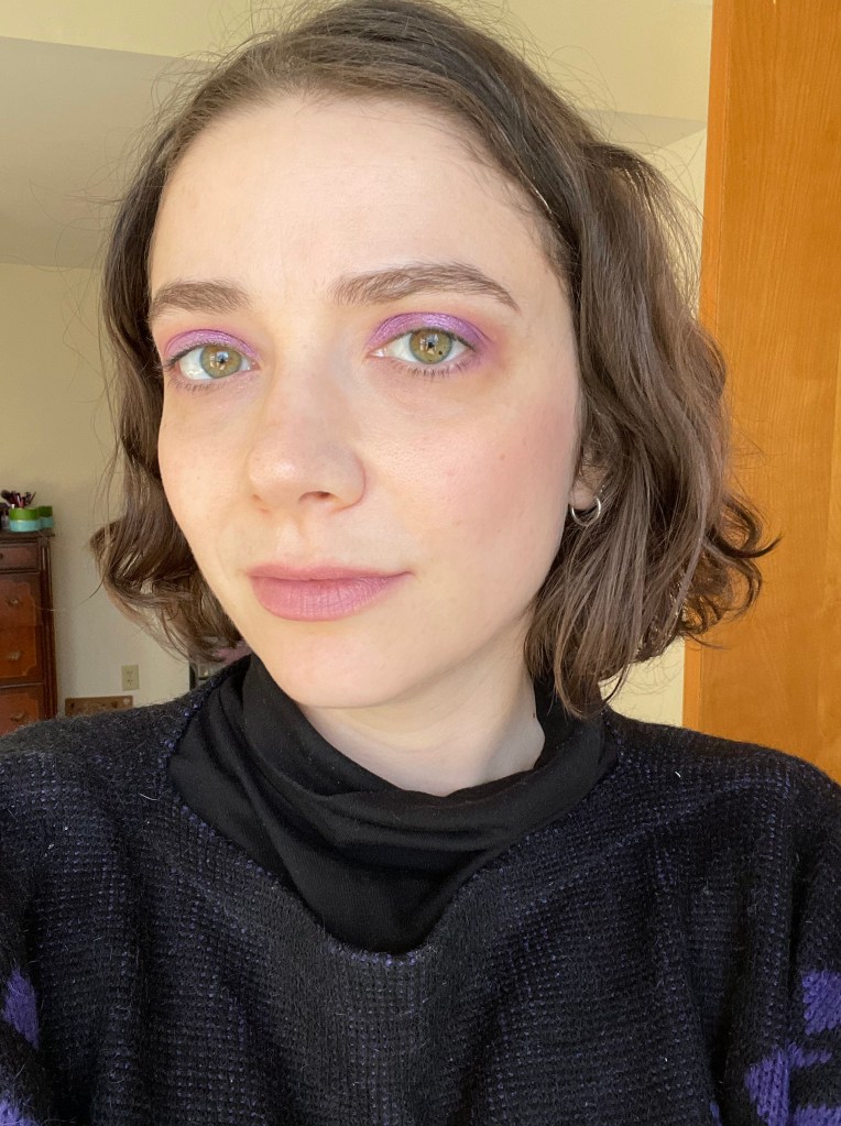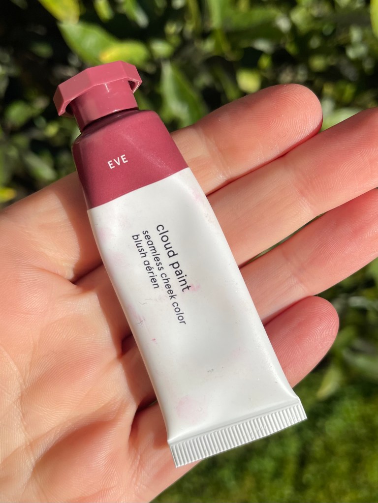 Believe it or not, Glossier released a deep plum Cloud Paint in November 2020 and I waited an entire year to try it. I thought Eve might be too dark for my skin tone, or too close in color to my favorite cloud paint, Storm. But now that I finally own it, I regret waiting so long. I like to apply Eve in an ’80s-inspired contour placement just below my cheekbones; blended out, it looks like a purplish flush on my skin. I was expecting it to be a statement blush, but it’s more flattering and natural-looking than I expected, which I guess is Glossier’s ethos. Here I am wearing Eve in a purple-toned look also featuring ColourPop’s Lilac You a Lot palette, Pat McGrath Madame Greige, and an ’80s sweater: