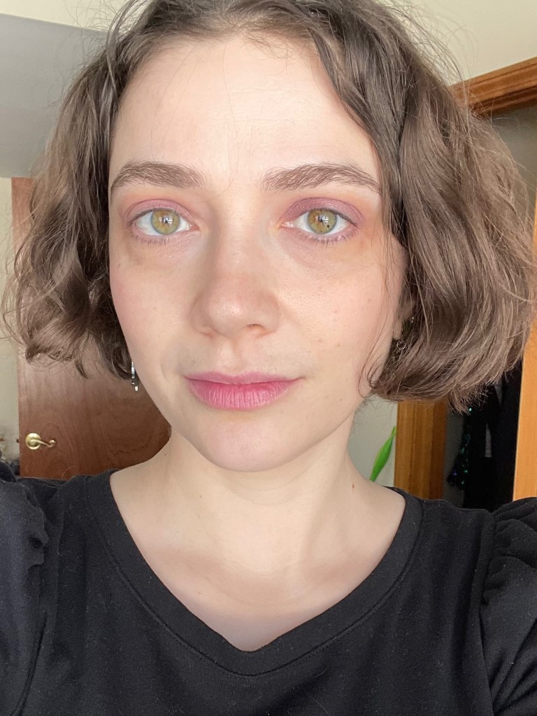Thank you!! I’m wearing a couple of shades from ColourPop Lilac You a Lot in the second-to-last picture and (I think) ColourPop Bill with the shimmer shade from Glossier Heather in the last one. I almost always wear mauve on my eyes for work.