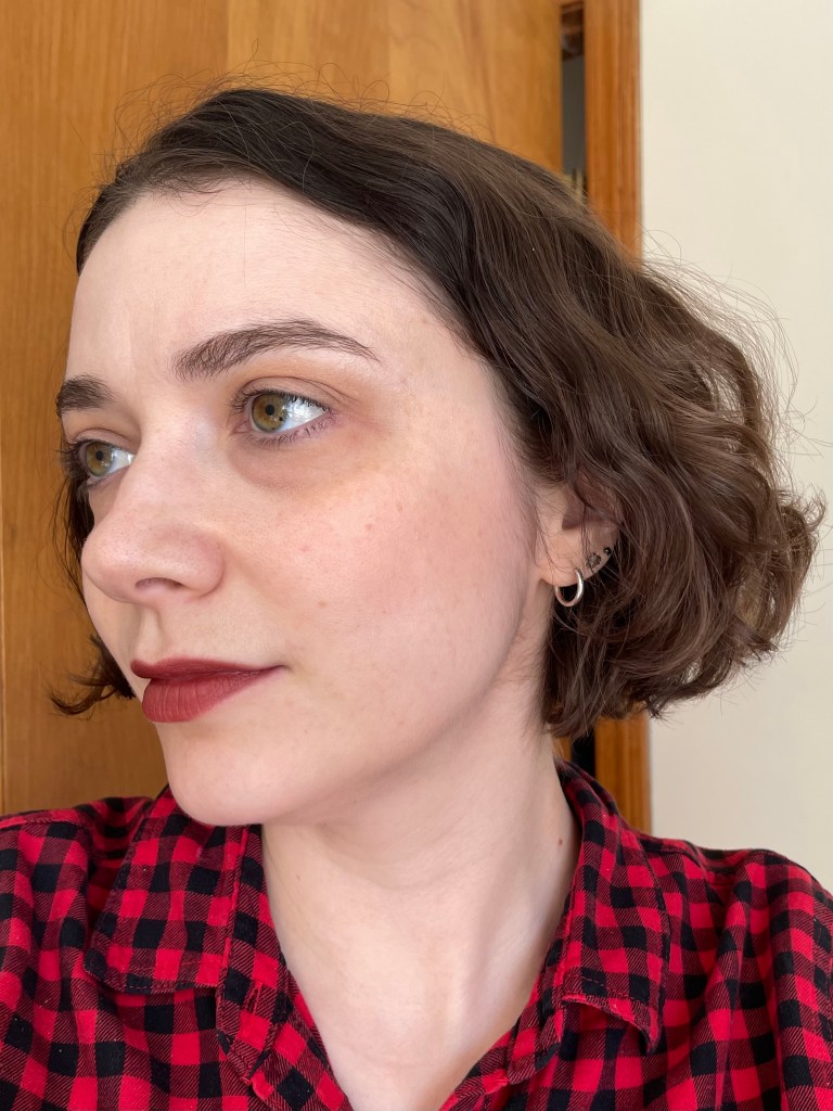ColourPop’s powder blush formula has improved significantly since I first tried it in 2018, when it was thick, clumpy, and weirdly moist (why I still own Whirl, the blush I bought back then, I don’t know). Flirt Alert is free of those issues. It’s finely milled, matte with just a hint of glow, pigmented but blendable, long-lasting…really, I couldn’t ask for more. On my face, Flirt Alert doesn’t emphasize skin texture or contribute any texture of its own; it just makes me look a little more polished and alive. I’ve been wearing it almost every day for the past three weeks, since it lasts through my workday and goes with absolutely everything. It even photographs well!