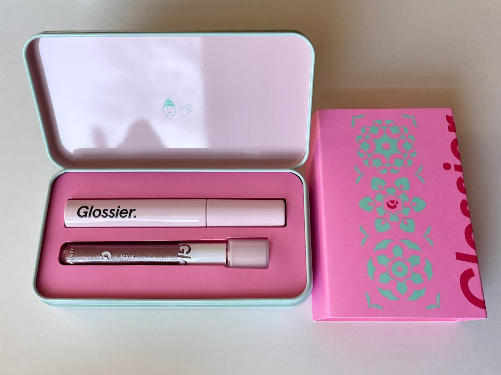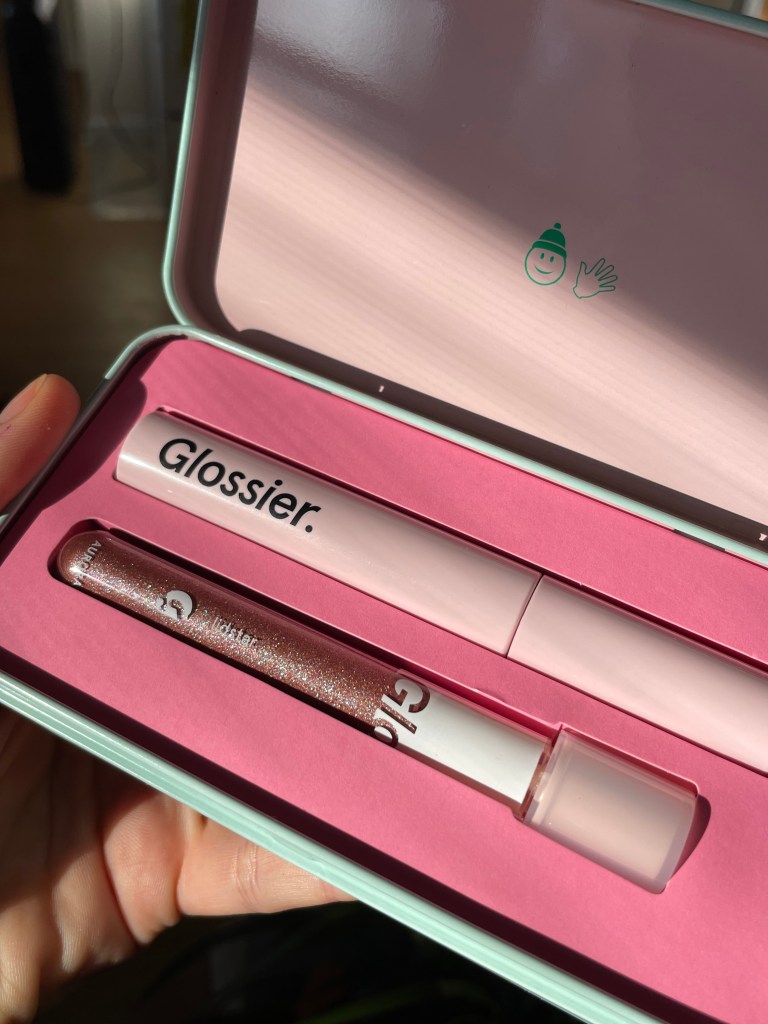 I’ve never taken much interest in holiday sets from beauty brands. They tend to feature excessive, tacky packaging, overpriced merch, and/or “universally flattering” makeup shades that I either already own or know I don’t want. Glossier’s Gold Kit, released in 2020, is a perfect example: $75 (seriously) for a gold-plated brass initial necklace and a lip gloss with barely visible gold shimmer. So I wasn’t expecting to buy any holiday set, still less a holiday set from Glossier, this November. But we all surprise ourselves sometimes. I hope I can surprise myself in another way by banging out this post quickly, so that it’s actually useful to someone.