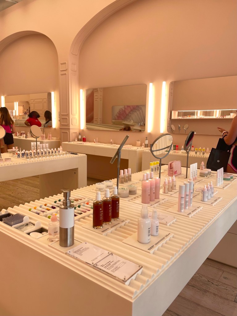 Each Glossier store is supposed to reflect some cultural aspect of its location, but I can’t help thinking that Glossier kind of phoned it in for Philly. Inspired by the city’s famous museums, Glossier created a space that, according to the brand’s Instagram, “contrasts grand architectural touches and ornate details with a softer, Glossi-er twist. Beyond our double-sided wavy trays, you’ll find muted tones of pink and Cloud Paint skies, taking cues from Rococo art and neoclassical paintings.” This is a pretty Eurocentric interpretation of a famously diverse city, and the “muted tones of pink” and “double-sided wavy trays” are standard features of every Glossier store. I wouldn’t call the art on the walls Rococo or neoclassical, either, but maybe I’m just being a stickler.