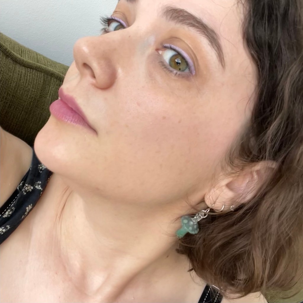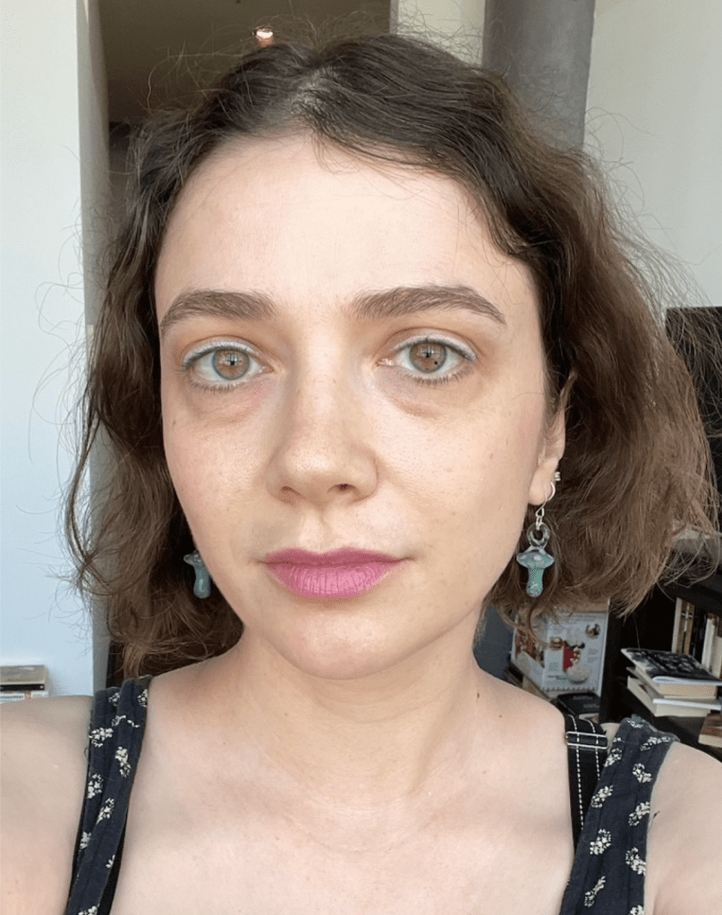 Like most of the other Cloud Paints I’ve tried, Wisp has unimpressive longevity, especially in the summer (to be fair, my face and head are very prone to sweating). If I’m walking around outside, Wisp vanishes in just a few hours, leaving a barely perceptible stain. And it’s so hard to take a photo in which the blush is visible on my face! I’ve tried different angles, different times of day, artificial light, natural light, close to the window, far from the window, you name it. In the images below, I’m wearing three coats of Wisp instead of my usual two, which was the only way I could get it to reliably show up on camera, and it was dicey even then. I don’t see much evidence of blush in this head-on shot, though it was more apparent in person.