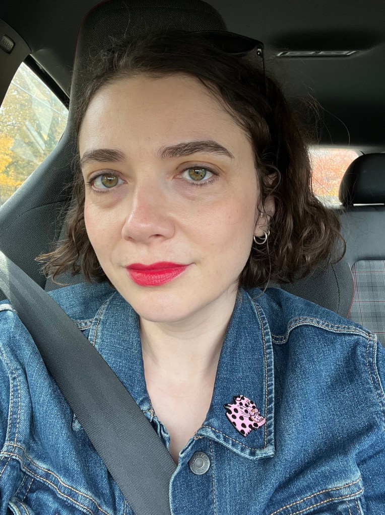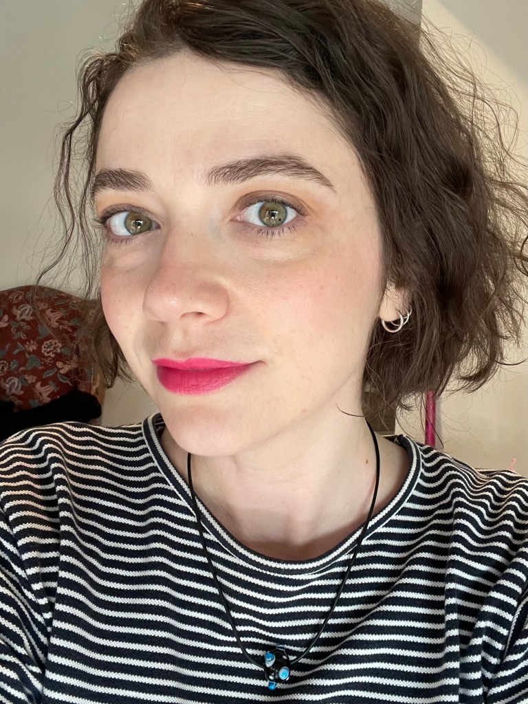 Va Va Violet, a very ’90s moody mulberry, is the only one of the eight that I wouldn’t wholeheartedly recommend. Like many dark lipsticks in shiny formulas, it’s patchy when worn at full strength. And though I can pull off most purple lip colors, this one makes me look sickly: a blue-leaning purple with a hint of gray isn’t a great match for a pale person with purplish undereye circles. In fact, in the only recent selfie I can find that features Va Va Violet on its own, I’m wearing sunglasses. Believe me, that’s for the best.