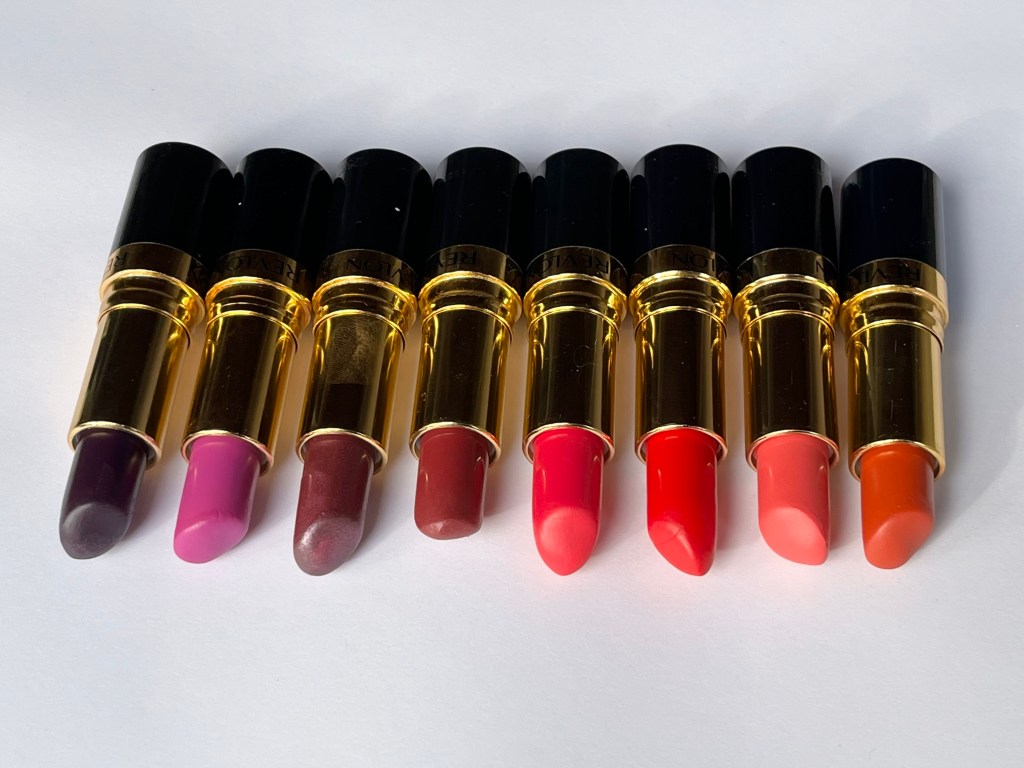This is a follow-up of sorts to a post I wrote a year and a half ago, in which I reviewed Revlon Super Lustrous Lipstick in Fire Peach, discussed the Super Lustrous formula as a whole, and linked to previous Super Lustrous reviews I’d written. But I’ve bought four shades in the formula since then (and destashed one), so I thought I’d re-swatch my collection and try to identify all of the SLLs I’ve ever owned, starting with Certainly Red in 2009. (Certainly Red is still available today, and I was tempted to buy it specifically for this post!)